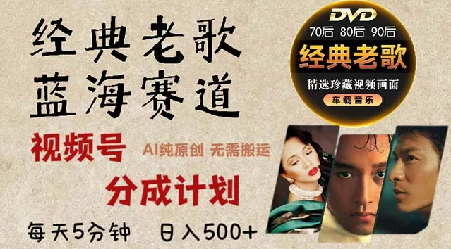 11月最新经典老歌赛道,视频号分成计划收益拿到手软,AI纯原创作品,无需搬运素材,每天5分钟,日入500+